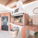 Outdoors, guests can enjoy a large covered veranda with a barbecue, wood-fired oven, dining table, and a comfortable sitting area with armchairs—perfect for relaxing and socializing.