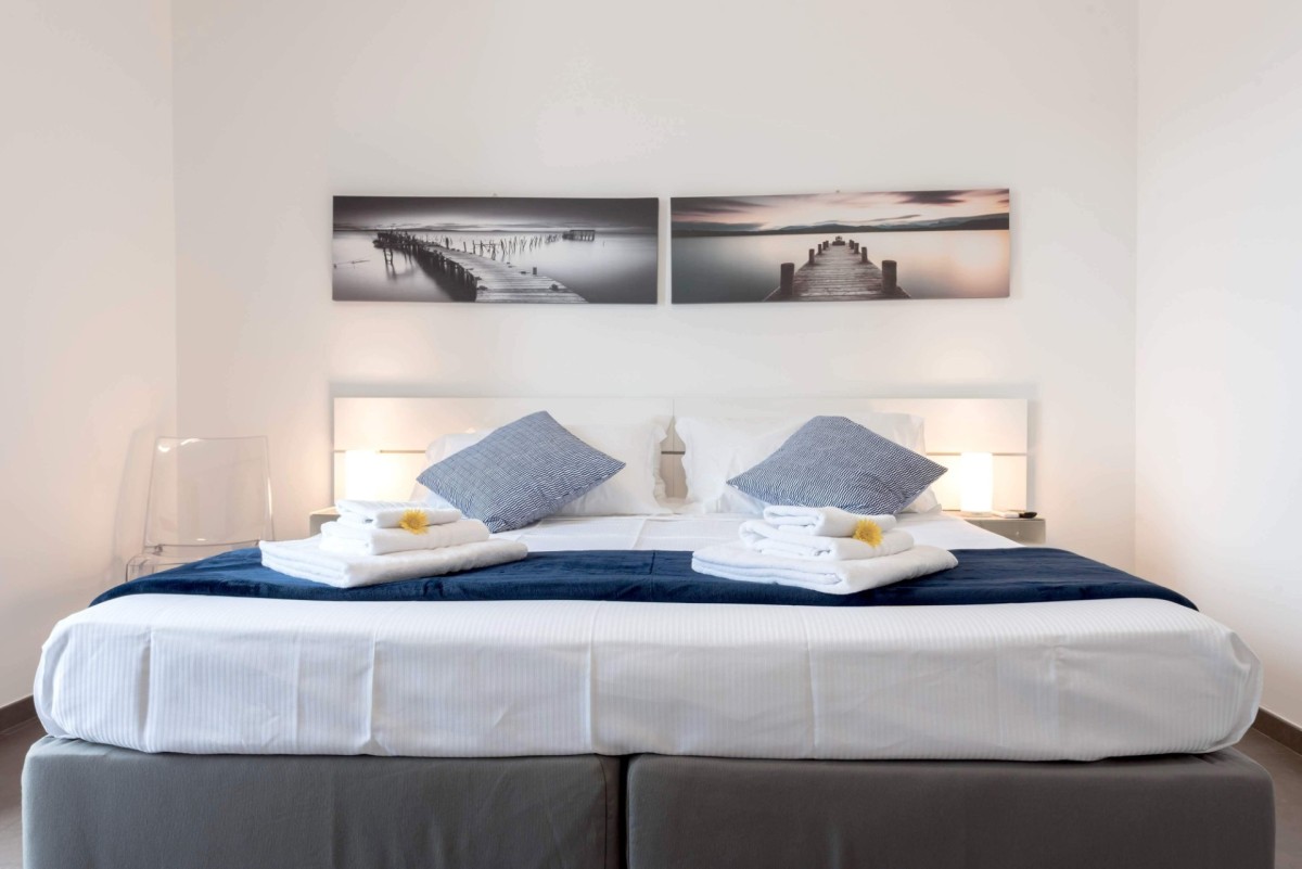 Bedroom 2: Ground floor bedroom with a double bed, A/C, WiFi, and shared bathroom with shower, vanity and WC. 2 guests maximum.