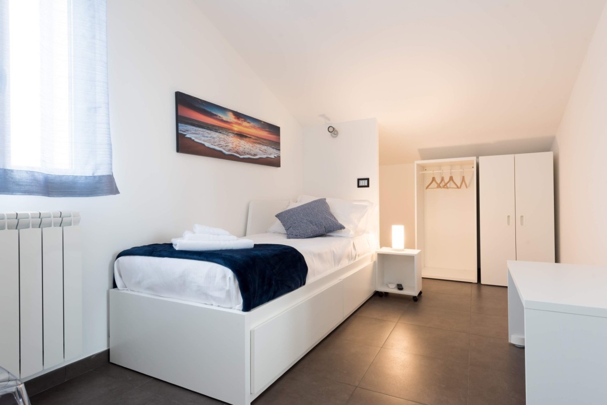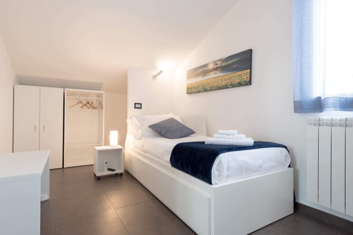 Bedroom 4: First floor bedroom a single bed, A/C, WiFi, and shared bathroom (with bedroom 3) with shower, vanity and WC. 1 guests maximum.