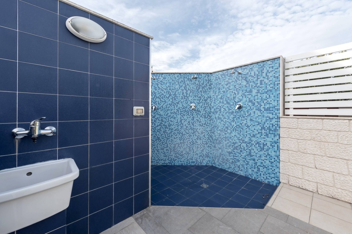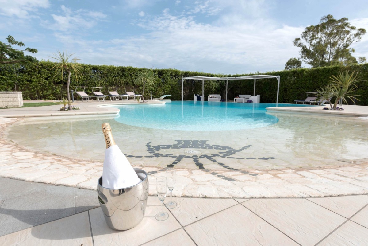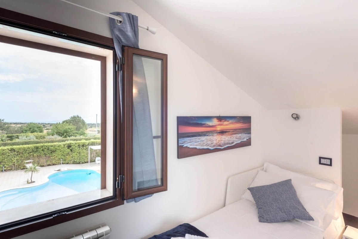 From the living area, an equipped veranda leads directly to the garden, where a beautiful swimming pool takes center stage. Designed for all ages, the pool features a beach-style entry, a shallow children’s area, and a deeper section complete with a diving board. Surrounding the pool are a gazebo, outdoor showers, and a barbecue area, creating the perfect setting for outdoor living, leisure, and shared moments under the Sicilian sun.