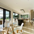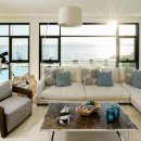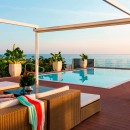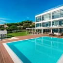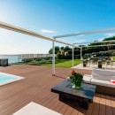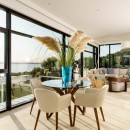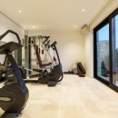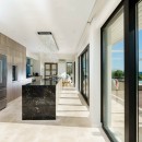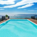 With over 300 square meters of living space spread across three floors, Villa Angelina is designed to offer both luxury and practicality. The ground floor includes an open-plan living and dining area, a fully equipped kitchen, and a fitness room. Multiple glass sliding doors open to the pool area and the sea, creating a seamless flow between indoor and outdoor spaces. This floor also includes a bathroom with a steam shower and a laundry room. The first floor features two en-suite bedrooms, each offering stunning sea views through full-height glass windows, along with a bright living room. The second floor is home to two large bedrooms, including a master bedroom with a spacious en-suite bathroom, a dressing room, and spectacular views. The second bedroom on this floor has its own private deck.