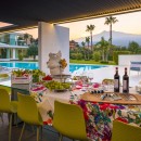 The annex is a separate area offering two more double bedrooms, each with its own bathroom and shower. Guests can also enjoy a dedicated wellness area, complete with a sauna and treadmill. Additional amenities throughout the villa include air conditioning, Wi-Fi, 8 televisions, satellite TV, a dryer, two washing machines, two dishwashers, a safe, and a barbecue.