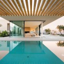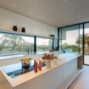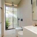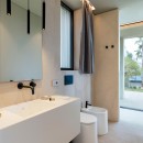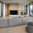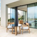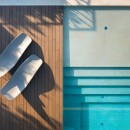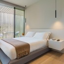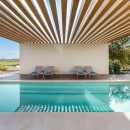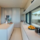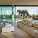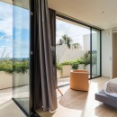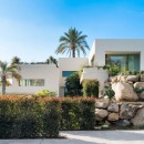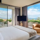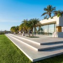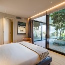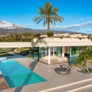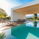 The interior spans three levels, connected by an easy-to-navigate staircase. The ground floor features a state-of-the-art kitchen and a spacious living area with large floor-to-ceiling windows that open to the terraces, garden, and pool. The first floor houses the sleeping quarters, including three bedrooms, each with a private patio and an en-suite bathroom with a shower. The lower level hosts a fourth bedroom with an en-suite shower, as well as a dedicated wellness area, which includes a spacious hot tub, sauna, Turkish bath, emotional shower, and fitness space.