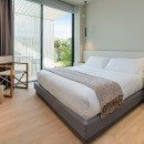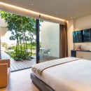 Bedroom 4: Lower-floor bedroom with double bed, A/C, TV, access to terrace and en-suite bathroom with shower, vanity and WC. 2 guests maximum