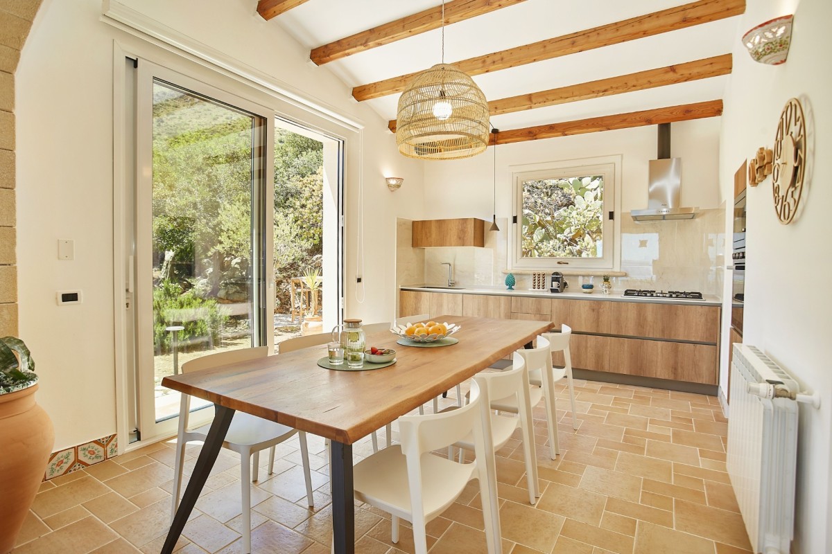 Villa Zingaro is a charming and elegant retreat, ideal for large groups, families, or corporate gatherings. Designed in refined farmhouse style, the villa features striking stone arches, rustic stone walls, terracotta-tiled floors, and exposed wooden beams that create a warm and authentic Sicilian atmosphere.