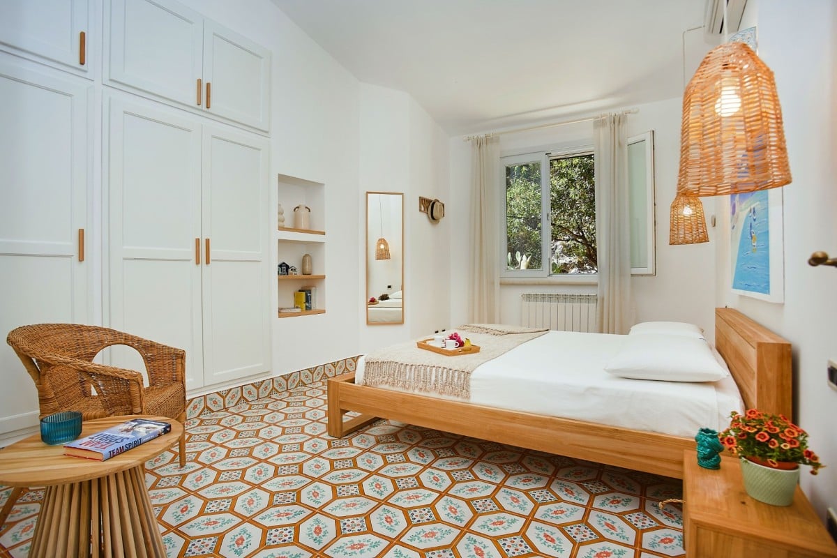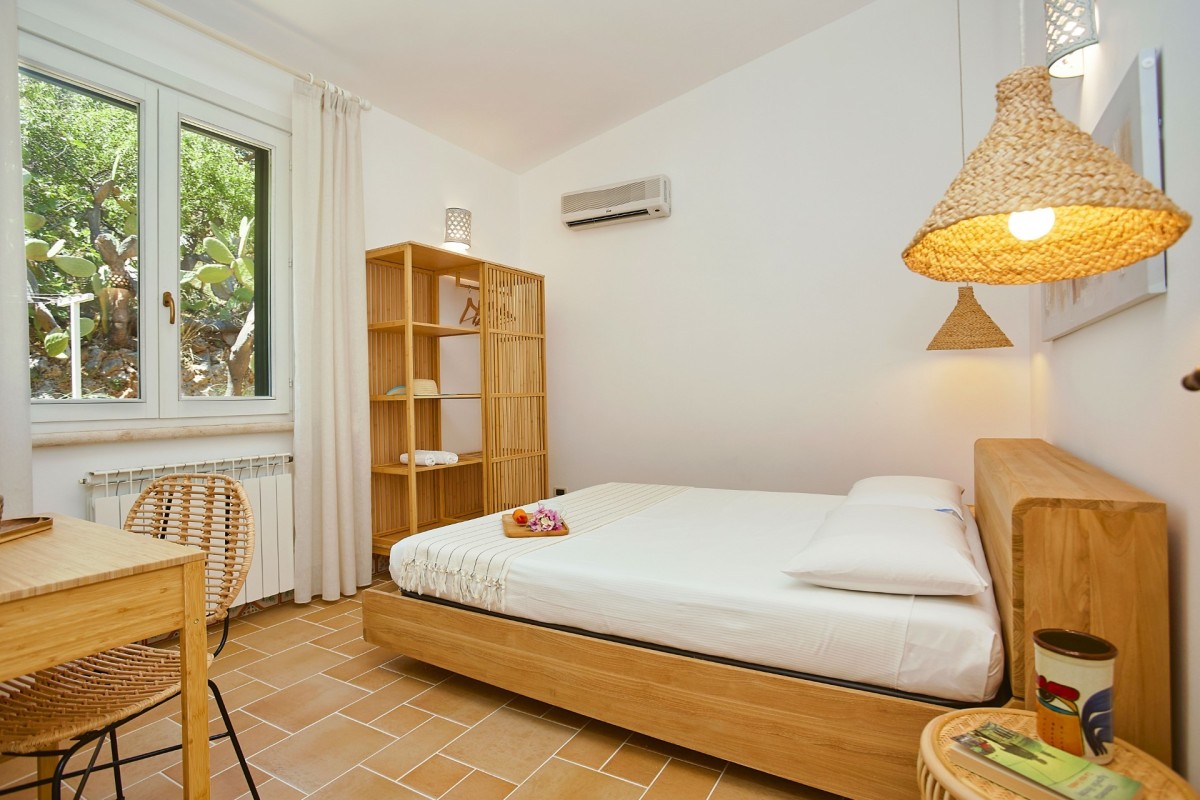 Bedroom 5: Bedroom with a queen-size bed, A/C, WiFi, and shared bathroom with shower, vanity, bidet, and WC. 2 guests maximum