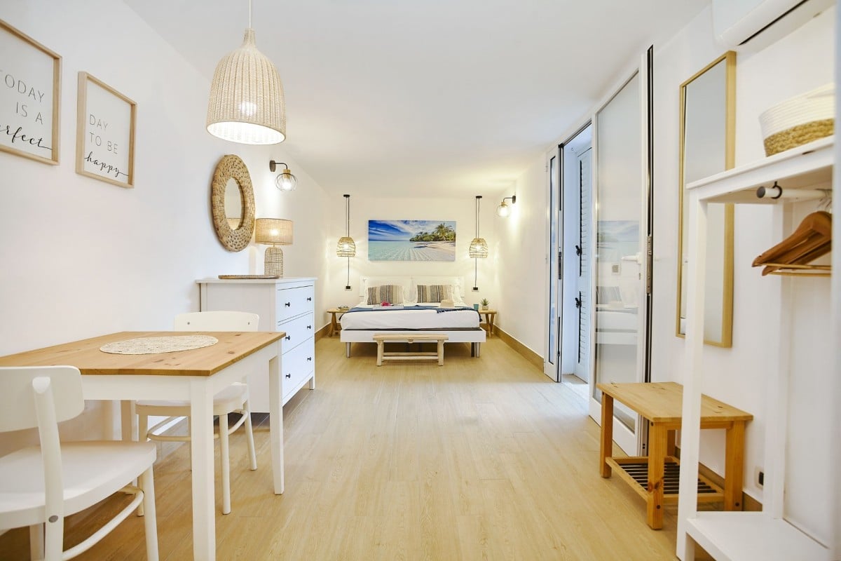 Bedroom 1: Bedroom with a queen-size bed, A/C, WiFi, balcony, and en-suite bathroom with shower, vanity, bidet, and WC. 2 guests maximum