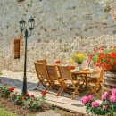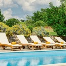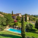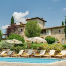The entire property is surrounded by nearby vineyards and a rolling landscape of cypresses, fields, and gardens. The property includes a large and private swimming pool surrounded by a stone terrace and partially shaded for hours of relaxation. The vineyards nearby even produce the vintages served at the villa!