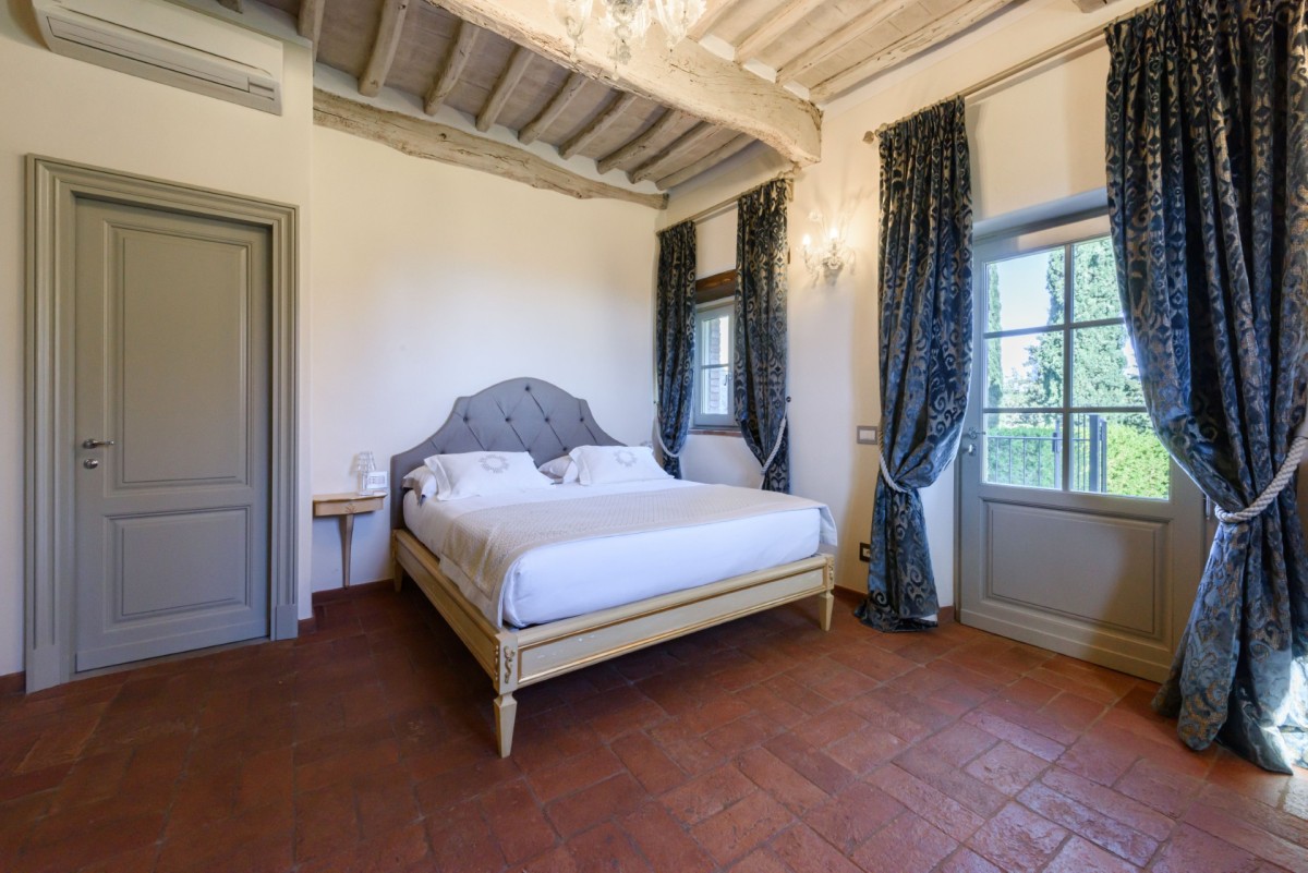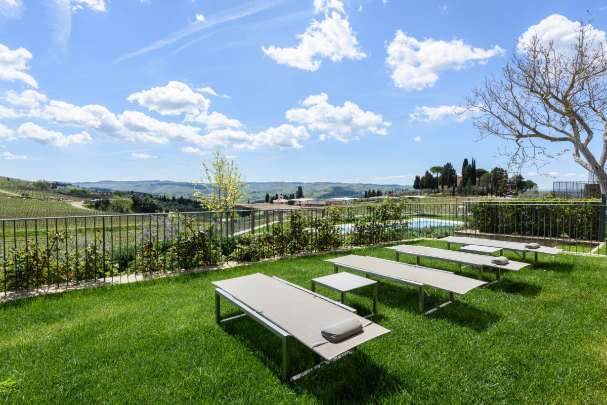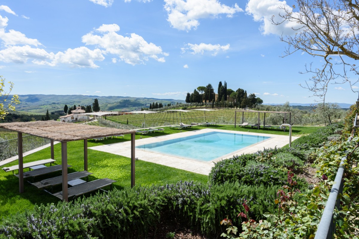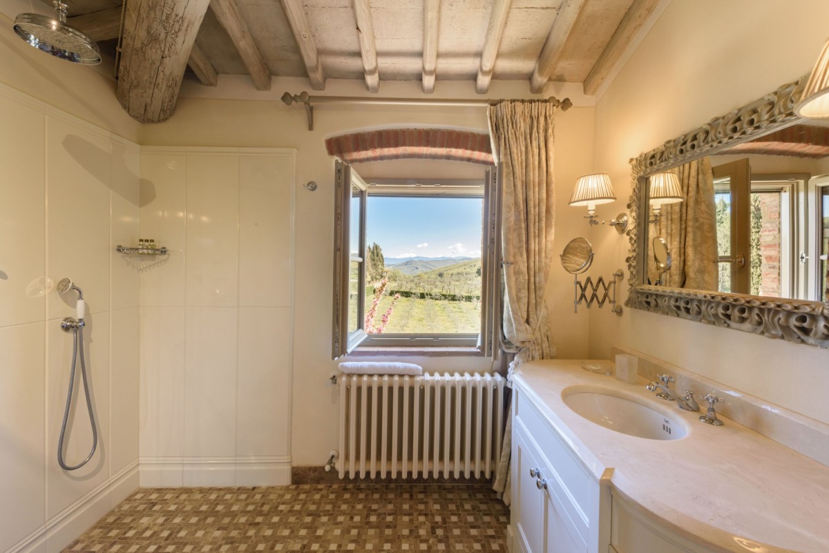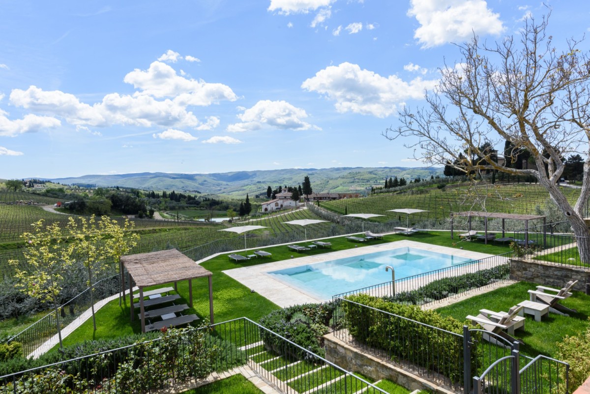 Villa Conca d’Oro is a stunning luxury villa with a private pool and spa, set in a panoramic position among the rolling Chianti hills, perfectly located halfway between Florence and Siena. Surrounded by vineyards and olive groves, the villa offers breathtaking countryside views and can accommodate up to 16 guests with 8 bedrooms and 9 bathrooms.