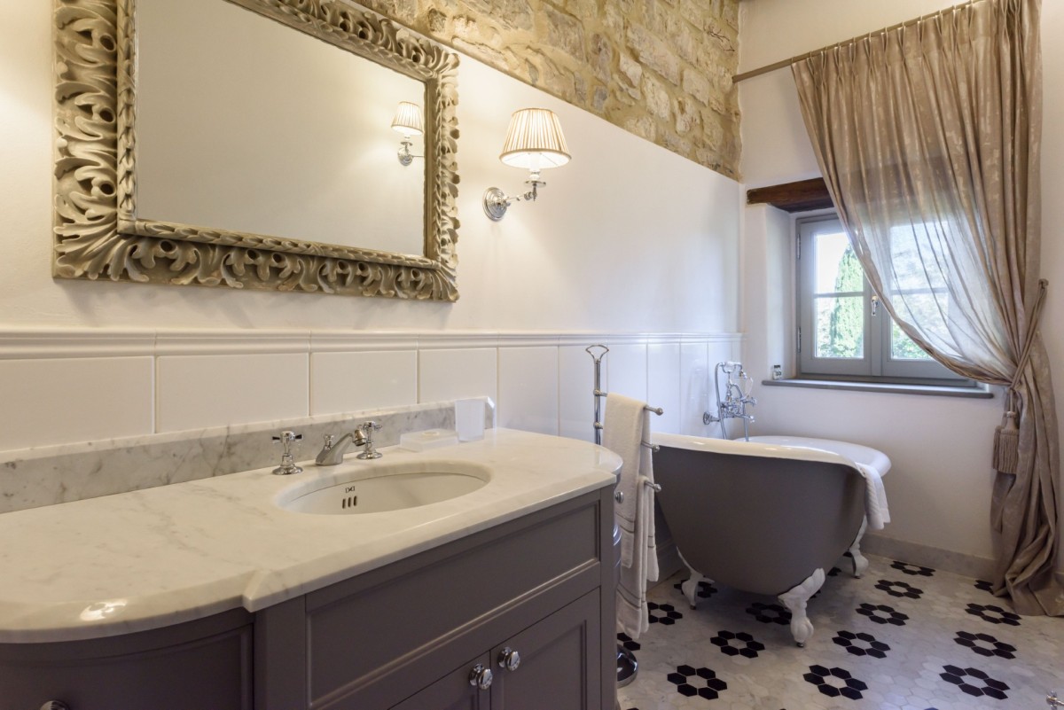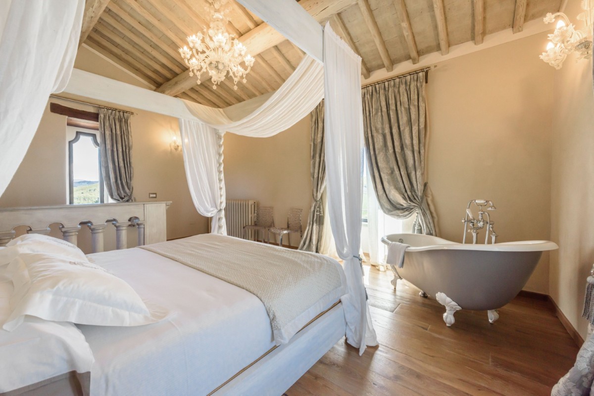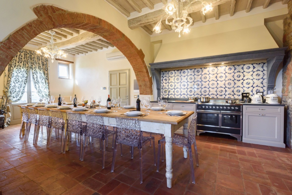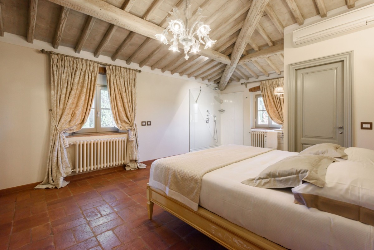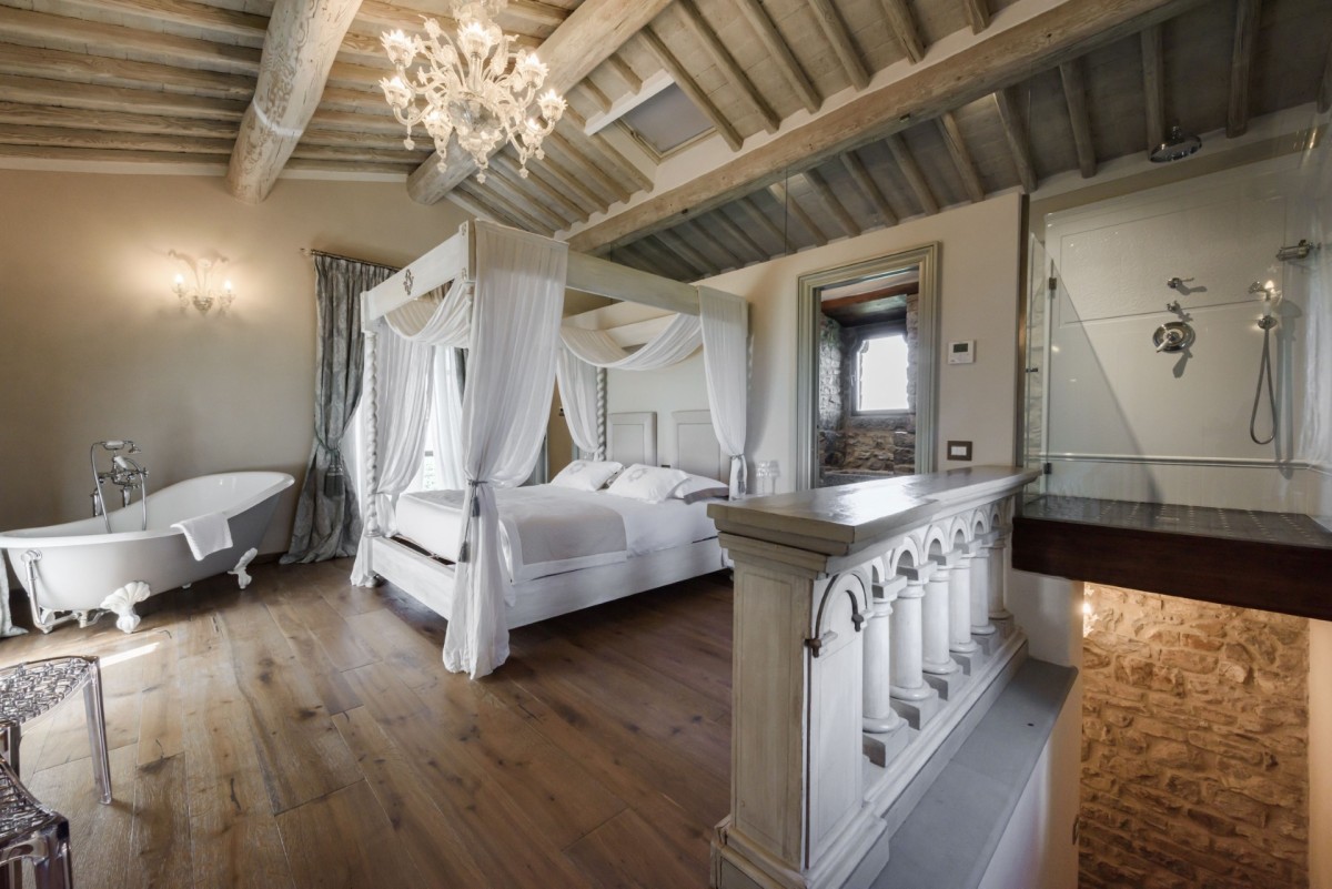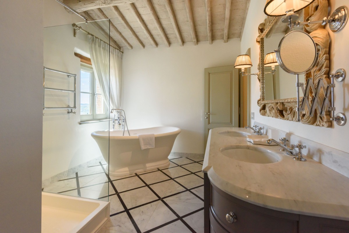 Villa Conca d’Oro is a stunning luxury villa with a private pool and spa, set in a panoramic position among the rolling Chianti hills, perfectly located halfway between Florence and Siena. Surrounded by vineyards and olive groves, the villa offers breathtaking countryside views and can accommodate up to 16 guests with 8 bedrooms and 9 bathrooms.