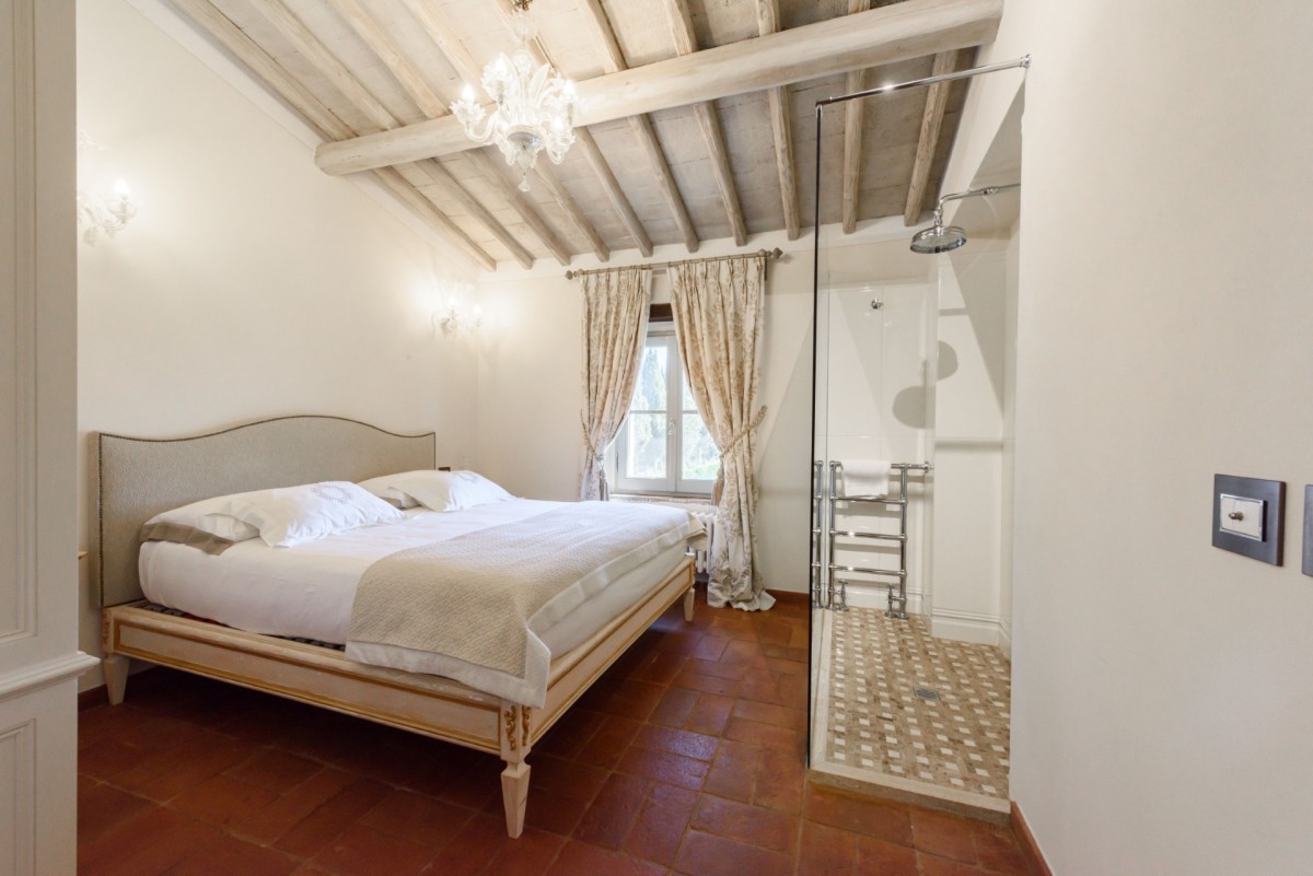 Bedroom 8: Second floor bedroom with a double bed, A/C, WiFi, safe, and en-suite bathroom with shower, vanity, bidet, and WC. 2 guests maximum.