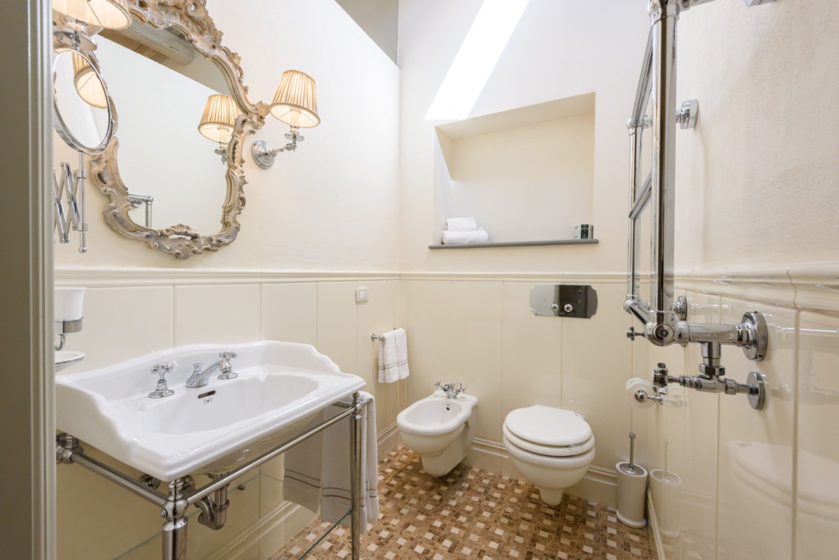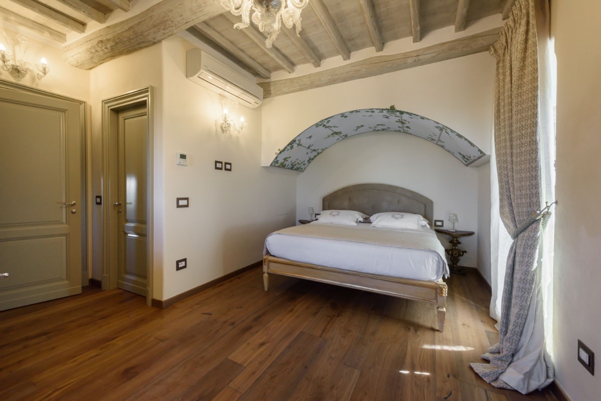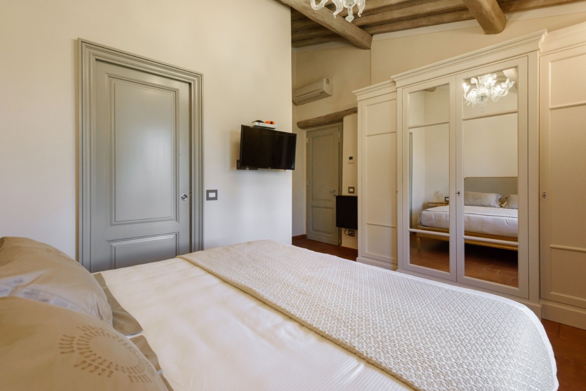 Bedroom 7: Second floor bedroom with a double bed, A/C, WiFi, safe, and en-suite bathroom with bathtub, shower, vanity, bidet, and WC. 2 guests maximum.