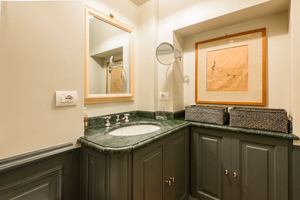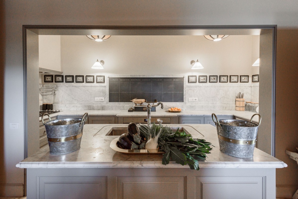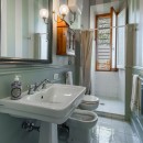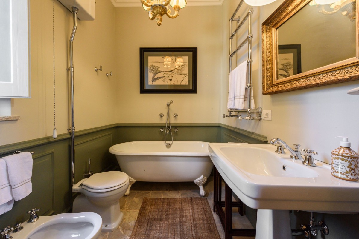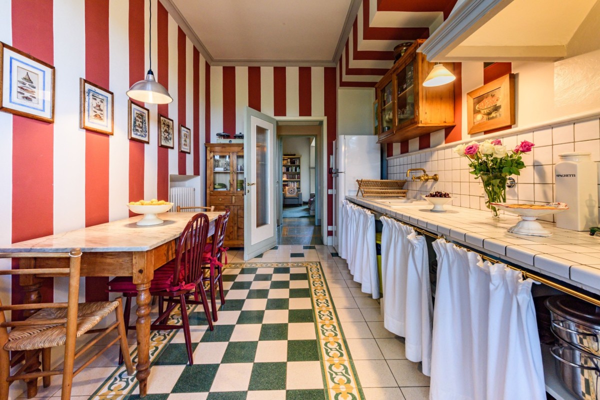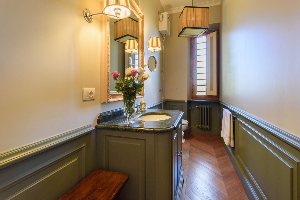 Dating back to the late 1700s, the property has been thoughtfully updated over the years, blending traditional charm with mid-20th-century architectural details. The private garden features boxwood-lined paths, mature trees, and a vegetable garden, while a covered terrace with a dining area and lounge offers panoramic views over the Pesa Valley, between Florence and Siena.