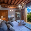 Exuding a tranquil charm, the villa showcases a typical Tuscan farmhouse facade, characterized by natural stone walls and a charming turret, providing panoramic views of the surrounding Chianti countryside. Spread across multiple levels, Villa delle Donne seamlessly blends period allure with modern comforts, its rooms adorned with thematic paintings of women.