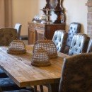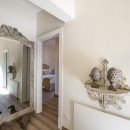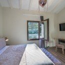 From the garden, you'll enter the main entrance hall. On this floor, you'll also find a generous living space, an expansive, fully equipped kitchen featuring a 7-burner cooker, double oven, large fridge, dishwasher, coffee machine, and ice maker. A French door leads to a patio with a dining area, complete with tables and chairs to accommodate all the villa's guests. Il Tinaio's kitchen is not only perfect for hosting cooking classes but also for hosting gatherings of 8 to 30 people, should the same party opt to rent out Villa la Marcellina as well. A convenient powder room is available on the ground floor.