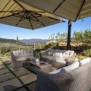 This villa exudes the classic charm of a Tuscan farmhouse and offers awe-inspiring 360° views of the surrounding Chianti region. Outdoors, you'll find original stone accents, multiple terraces, and lush Mediterranean gardens graced with olive trees and verdant flora. Access to the property is via a private path leading from the main road.