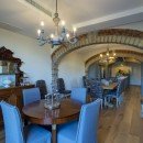 Villa Il Tinaio spans two distinct levels, brimming with cozy nooks and stylish furnishings. The interior design seamlessly blends modern and classic elements, creating a harmonious ambiance. Access to the villa is possible through various entrances, with the main entry situated on the second level. Inside, the villa offers seven en-suite double bedrooms, a capacious living room, two inviting sitting rooms, and a spacious dining area capable of accommodating up to 30 people. The modern and well-equipped kitchen is a culinary enthusiast's dream.