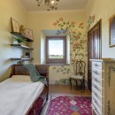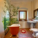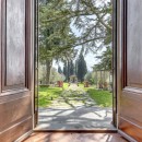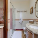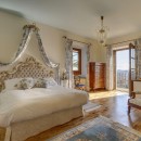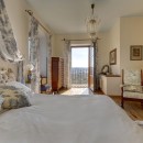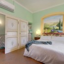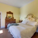 An elegant, broad staircase with a red carpet ascends gracefully from the entrance hall to the upper floor, which houses five bedrooms: four doubles and one single. The single and one double bedroom share a bathroom equipped with a large bathtub, while the remaining bedrooms have access to private bathrooms (located just outside each room) with showers. Each bedroom is uniquely decorated, featuring distinctive characters and carefully selected antique pieces. All villa areas, except for the wine cellar on the lower ground floor—which is available for visits upon request and in the company of staff or the owner—are accessible to guests. Air conditioning is provided in all bedrooms, except the single room, ensuring comfort during your stay.