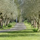 The villa's gardens are a vision of beauty, featuring a spacious lawn, vibrant flower beds, avenues lined with mature olive trees, and terracotta pots brimming with geraniums. The symmetrical beauty shared between the villa and its chapel, especially at the garden's end, is mesmerizing. The walkway, adorned with pots and illuminated at night, creates a magical atmosphere. The villa's large swimming pool (12x6m), positioned to bask in the day's sunlight, is surrounded by inviting sun loungers, shaded spots for relaxation, reading corners, and outdoor lounging and dining areas. The outdoor amenities include a children's swing, a small, covered gym equipped with a treadmill and exercise bike, and a strategically placed bocce pit, perfect for enjoying the game with a glass of wine as the sun sets.