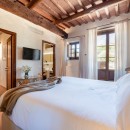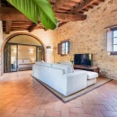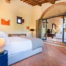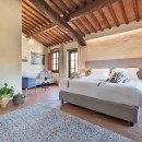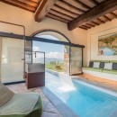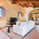 For a truly immersive experience, Villa Vinia is an ideal retreat. This recently renovated ten-bedroom luxury villa combines rustic architecture with modern comfort, creating a peaceful haven in the Tuscan countryside. Traditional stone walls, terracotta floors, and brick arches pair beautifully with contemporary furnishings, offering a warm, elegant atmosphere.