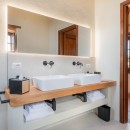 Inside the main villa, guests can enjoy two lounge areas with quiet workspaces and a large eat-in kitchen designed for cooking and gathering. The adjacent annex features a cozy living area, a compact kitchen, and a dining space—perfect for added privacy or flexibility.