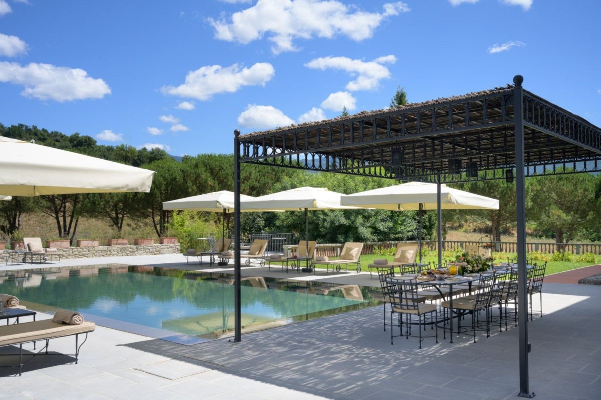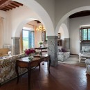Inside the villa, the rooms are spacious and light. Cool tiled floors beneath your feet and ancient beamed ceilings along with arches and stone create a perfect balance of earthiness and comfort. The downstairs spaces include a large lounge, massive fireplace, and welcoming tiled kitchen. You can access the terrace from several rooms, including the formal dining room.