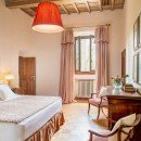 Situated just 25 minutes by car or a short 30-minute train ride from Florence, Villa Isimora serves as the perfect gateway to exploring the wonders of Tuscany. Inside, the elegant interiors boast a timeless traditional design adorned with original frescoes, basking in the gentle embrace of natural light and a soothing, classic color scheme. The impeccably maintained garden is part of a vast private estate, ensuring a safe and delightful outdoor experience for children.