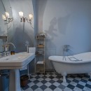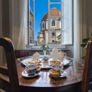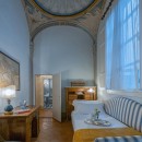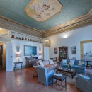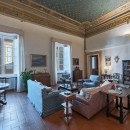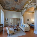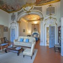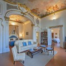 The three-bedroom villa is like a time capsule with its high domed ceilings painted with original frescoes, its gilded moldings, and its terra cotta floors, it is straight out of the 1600 and 1700s. Visitors are astonished when they enter the main hall. High gilded ceilings and the stunning views through the tall windows look out on Cappelle Medicee. The tea room is also frescoed and houses an impressive library, and the dining room also features original painted ceilings.