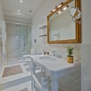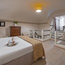The three bedrooms are modernized too, but retain any original features. The master bedroom features a bed alcove, an entertainment system, and a large en suite bath. The twin bedroom is on the mezzanine level and has a private bath. On the main level is the final, single bedroom with a private bath too.