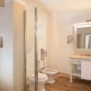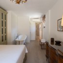Bedroom 7: Ground floor bedroom with a king-size bed, A/C, WiFi, working desk, armchair, access to terrace, and en-suite bathroom with shower, vanity, bidet, and WC. 2 guests maximum.