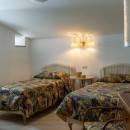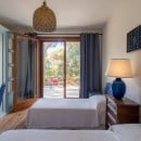 Bedroom 3: Ground floor bedroom with two single beds, A/C, WiFi, armchair, access to terrace, and en-suite bathroom with shower, vanity, bidet, and WC. 2 guests maximum.