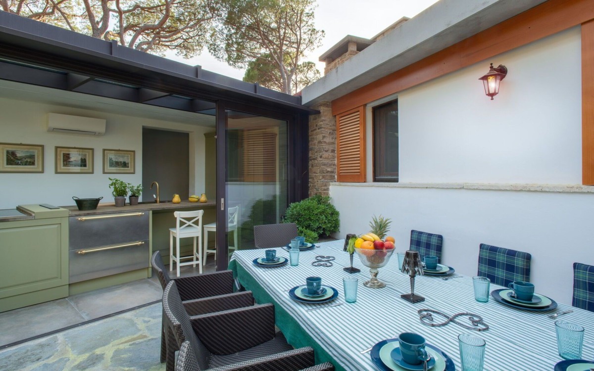 Villa la Pineta is nestled within a magnificent pine forest on a private beach in the exclusive gated community of Pineta di Roccamare. Surrounded by 20,000 m² of garden and just steps from the sea, the villa offers direct access to the renowned white sandy beach of Roccamare, celebrated as one of Italy’s most beautiful and awarded the European Blue Flag for its crystal-clear waters.