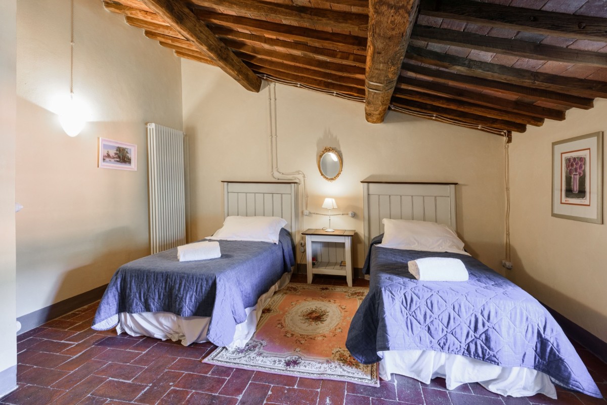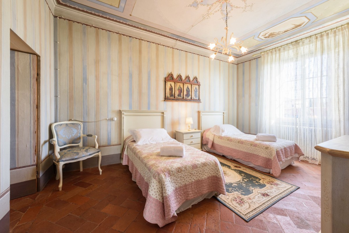 Bedroom 3: First floor bedroom with two single beds, A/C, WiFi, and en-suite bathroom with hydromassage shower, vanity, bidet, and WC. 2 guests maximum.