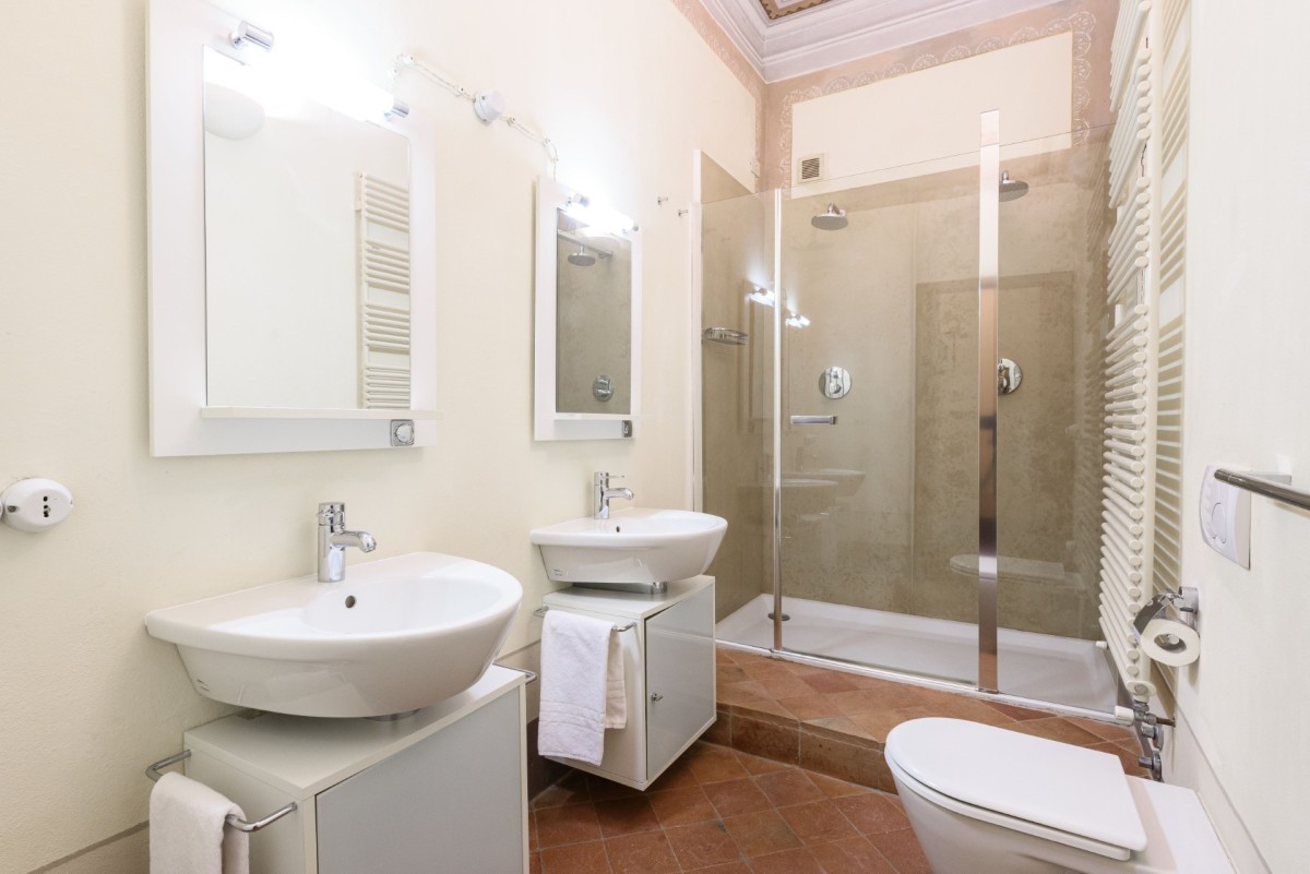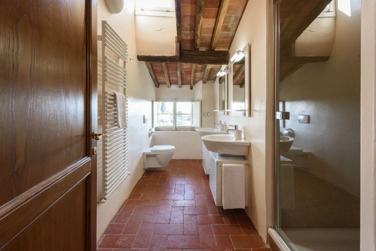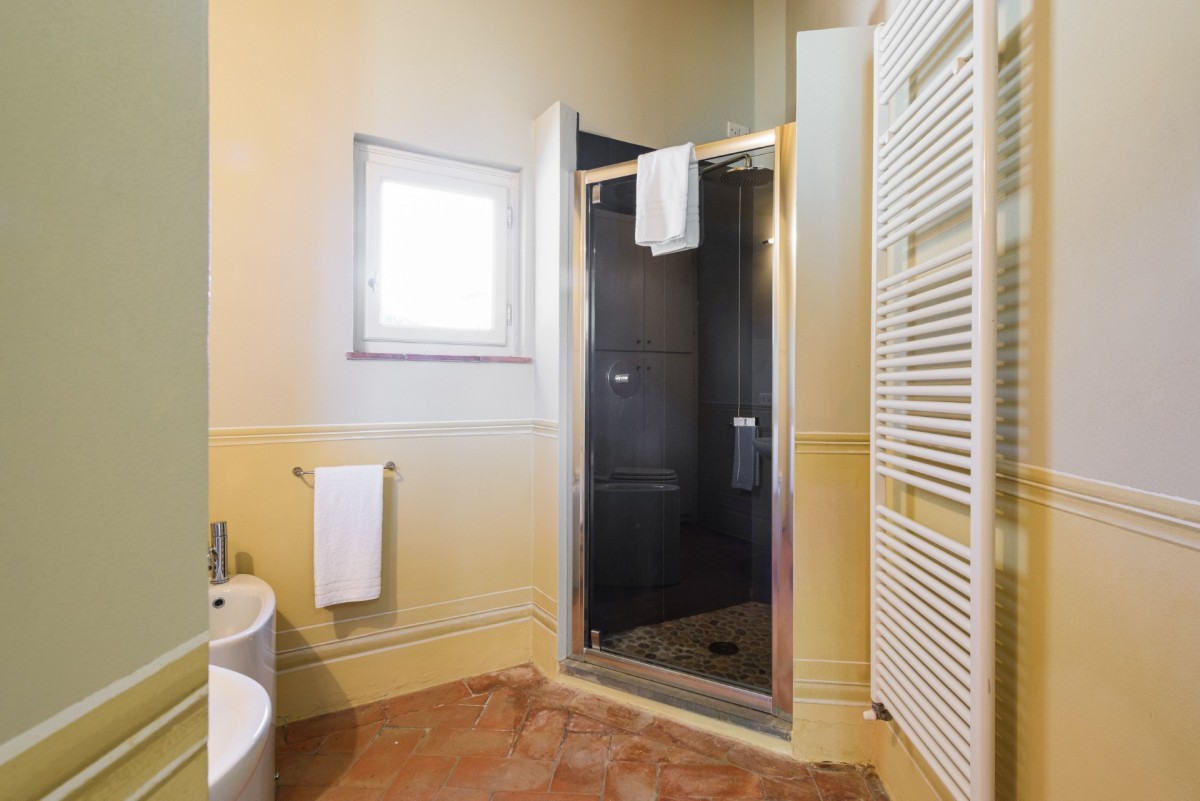 Bedroom 7: Second floor bedroom with a double bed, A/C, WiFi, and shared bathroom with shower / bathtub, vanity, bidet, and WC. 2 guests maximum.