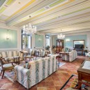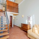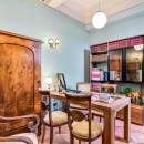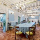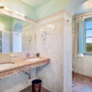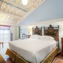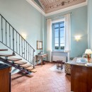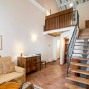 The interiors of the villa are remarkable and preserve the original materials and tone. High and colorfully painted ceilings, terra cotta floors, and large rooms stocked with comfortable furniture let you experience what life in a villa was meant to be. The formal living room faces the view and opens into the formal dining room. There is a charming study with a work desk, and the kitchen is a full-blown professional space stocked with stainless steel appliances.