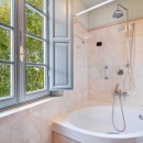 Bedroom 9: Second-floor bedroom with a king-size bed, A/C, TV, and en-suite bathroom with bathtub, shower, vanity, and WC. 2 guests maximum.