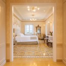 Bedroom 3: Yellow bedroom with a king-size bed, and en-suite bathroom with bathtub/shower, double vanity, and WC. 2 guests maximum.