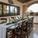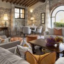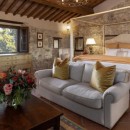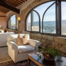 The first of the meticulously restored Farmhouses situated along the picturesque country road that grants access to the estate, La Casa presents a splendid villa rental opportunity nestled amidst the enchanting Tuscan vineyards. A majestic path guides you to the primary dwelling, designed around an expansive, unobstructed living space adorned with exposed stone walls, subtly separated by graceful arched doorways and windows. This residence exudes an airy and welcoming ambiance, offering an intimate atmosphere. In addition to the main dwelling, two exquisite guest houses grace the property, sharing a charming central courtyard that leads to the infinity-edge pool, its edge seemingly vanishing into the hilltop, overlooking the sprawling vineyards below. With breathtaking vistas in every direction, particularly across the undulating countryside to the southeast, this property undeniably ranks among the most exceptional residences in all of Tuscany.
