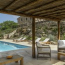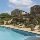 Each villa includes a spacious living room with a traditional fireplace, a dining room, and a fully equipped kitchen designed for entertaining. Outside, you’ll find a tranquil fruit garden, a flower-lined patio perfect for al fresco meals, and a large, sun-soaked swimming pool.