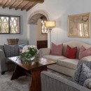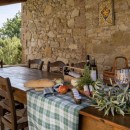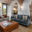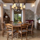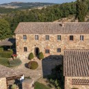 San Regolo is a grand estate situated along the property road that leads to the renowned 'Belmond Castello di Casole' hotel, which is nestled within the same estate. The residence is gracefully surrounded by olive groves on two sides, and as you venture past the olive trees, you'll be greeted by lush vineyards. This remarkable farmhouse is the largest on the estate, offering five bedrooms and five and a half bathrooms, spread across the main residence and two charming guest houses. The property boasts multiple outdoor dining areas, a stunning infinity-edge private pool, and expansive, beautifully manicured lawns.