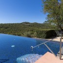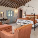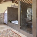 The two guest residences, featuring some of the most captivating bathrooms on the entire estate, exude romance and charm, making them among the most enchanting accommodations in all of Tuscany. In a property where architectural marvels abound at every turn, perhaps the most memorable is the dazzling glass-tiled infinity pool that seems to extend endlessly into the rolling Tuscan hills.