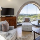 The primary residence is thoughtfully designed around an elongated, open living space adorned with exposed stone walls elegantly separated by arched doorways and windows. Magnificent hardwood doors swing open to reveal a charming pergola, creating an inviting setting for evening dining. Adjacent to this space, the original forno adds to the warm and intimate dining experience. On the second floor, two generously sized master suites provide complete privacy and offer sweeping vistas of the picturesque countryside. Each suite is accompanied by two spacious outer sitting rooms, adding to the allure of the setting.