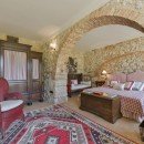 This inviting and family-friendly residence pays homage to the timeless allure of an age-old Tuscan casa colonica. Exposed stone walls, beamed ceilings, brick embellishments, arched entrances, and snug fireplaces are the hallmarks of its rustic charm.