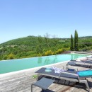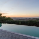 The villa offers six generously sized bedrooms accessible via an elevator, all lavishly furnished with king-sized beds, plus one smaller bedroom with a single bed. Each bedroom is equipped with Wi-Fi, satellite TV, and air conditioning. The upper-floor bedrooms grant breathtaking vistas of the valley and gardens, while those on the lower level feature private entrances. Every bedroom boasts a private bathroom with showers and hairdryers. In the basement, a spacious laundry area includes two washing machines and a dryer. Villa Monticelli's interior design seamlessly melds contemporary aesthetics and pieces from the owner's personal contemporary art collection with antique elements, imbuing the villa with a distinctive character. The living spaces include two capacious rooms suitable for hosting private gatherings or unwinding by the fireplace. Additionally, there's a sizable dining room with seating for 12 and a dedicated office space furnished with a spacious desk and color printer. Guests can luxuriate in the 17x5 meter two-sided infinity pool, offering awe-inspiring vistas spanning from Radicofani to Pienza.