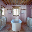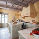The villa itself is a masterpiece, adorned with hand-painted walls and meticulously restored ceilings by Florentine painters. These artisans have used a palette of colors that pay homage to the original hues adorning the estate's walls, featuring serene shades of pale greens, violets, and yellows. The living areas are a haven of tranquility, flooded with natural light and refreshing breezes, providing a perfect respite for weary travelers. Upstairs, three double bedrooms and an additional bedroom with two single beds, ideal for children, await. Each bedroom boasts the convenience of air conditioning and en-suite bathrooms.