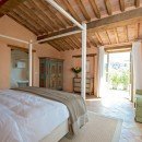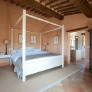 Bedroom 1: Upper floor Master bedroom with a king-size four poster bed, WiFi, A/C, heating, ceiling fan and en-suite bathroom with bathtub, shower, vanity and WC. 2 guests maximum.