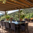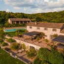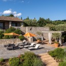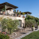The luxury infinity pool (16.5 m x 7.5 m) is surrounded by wide teak decking and a graceful pergola, with heating available on request. Sunbeds, chairs, and parasols create a comfortable lounging area around the pool. A lovely panoramic terrace and pergolas offer a sofa and a dining table for ten, while the landscaped gardens feature mature olive trees, lavender banks, and a curated selection of flowering and scented shrubs. Outdoor tables and armchairs placed outside the main rooms overlook the estate—an inviting setting for morning breakfasts. The property is completed by a private, fenced, and beautifully maintained garden.