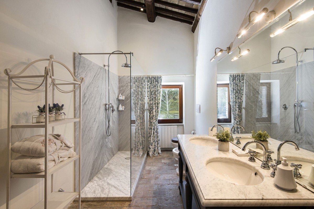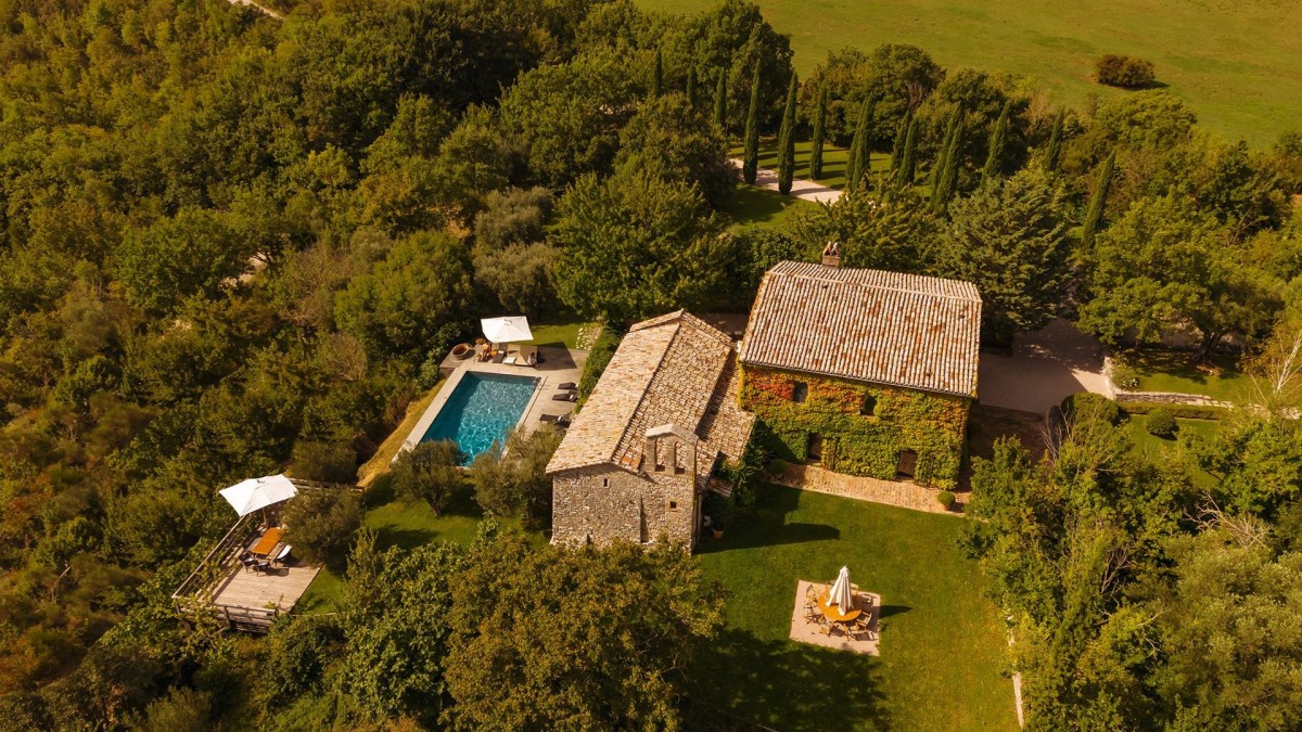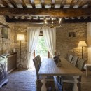 Villa San Savino is a four-bedroom 14th-century property named after Saint Sabinus, Bishop of Spoleto, to whom the Estate’s small church was once dedicated. Historically, one of Murlo’s most important churches, it served as the Sunday gathering place for local farmers until the late 1970s. As one of the oldest buildings on the Estate, its terracotta floors, original kitchen, and impressive stone walls preserve the character and history of this former social hub.