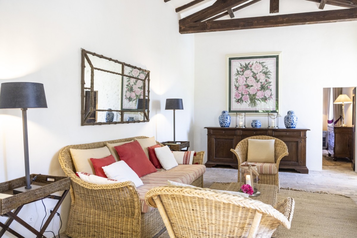 Nestled within an elegant, spacious garden, Villa San Savino features a stunning wooden-decked terrace offering a peaceful haven with uninterrupted views across the Estate. The villa includes a luxury private pool (11 m x 5 m) with heating available on request and a thermal cover, as well as an always-heated outdoor hot tub beside the pool. Sunbeds, chairs, and parasols surround the pool area for relaxing in comfort. A terracotta-tiled terrace outside the living room provides sofas and a dining table, while a breakfast table with a parasol sits in the garden near the kitchen. A superb panoramic terrace, furnished with sofas and chairs, enhances the outdoor living experience. The private fenced garden is beautifully landscaped, and air conditioning is available in all bedrooms.