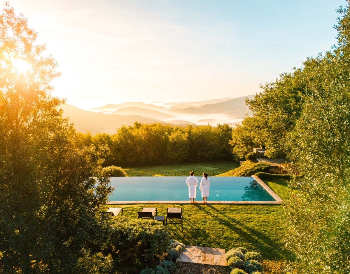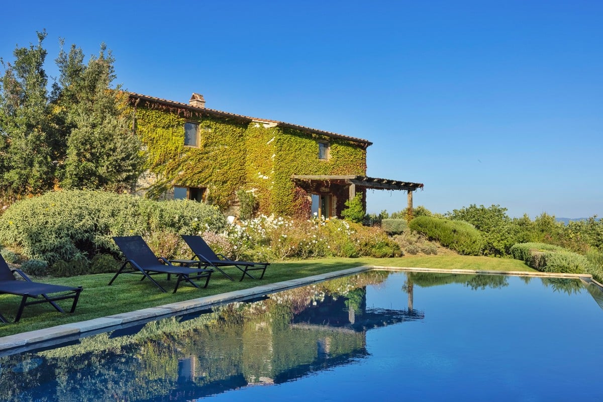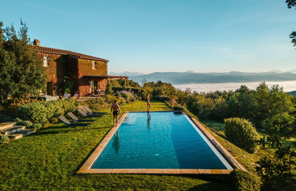 This three-bedroom villa, perched at the very top of Monte Santa Croce, exemplifies flawless restoration in a truly exceptional setting. Santa Croce could easily be called “the-villa-on-top-of-the-world,” offering breathtaking 360° views across the Murlo Estate and the rolling hills of Umbria. As one of the most striking villas on the estate, it captivates with refined interior design and a large infinity pool that appears to float above the Murlo valley.